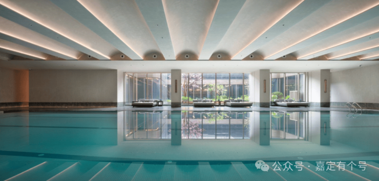 嘉定主城首个约1500㎡恒温泳池会所,对标国际星级酒店的标准,将艺术品位、生活意趣、空间意境与休闲体验完美融合,会所外的下沉星光悬瀑水景庭院同样是区域内仅有的奢华配套。想象一下,当你在健身房挥汗如雨或在泳池里尽情畅游时,落地窗外就是琉璃水光和自然景观的诗意碰撞。更颠覆的是性价比——黄浦滨江某16万+/㎡豪宅仅配1200㎡会所,南山璞缦则是以更宽敞更丰富的空间配置,呈现更全面更高端的生活体验。