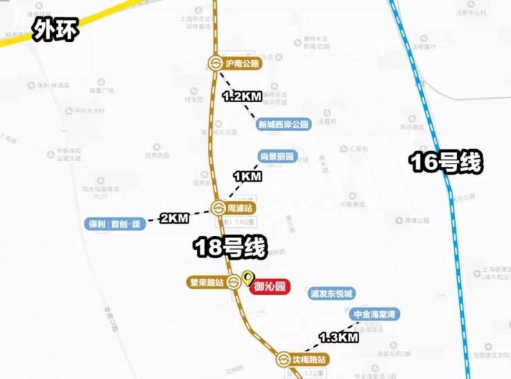 而且18号线的换乘很多。从繁荣路站出发3站可到御桥换乘11号线,目前的御桥已是浦东中部一个小中心节点,聚集了复地活力城、开新里、百联东郊购物中心等商配。