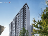 首先从建筑外观看,紫薇之星一改紫薇花园系列红墙立面,外立面采用浅色系全石材干挂外立面,巴西都伯斯金麻、宏宇金麻,搭配铝板线条,给人沉稳挺拔、时尚大气之感。