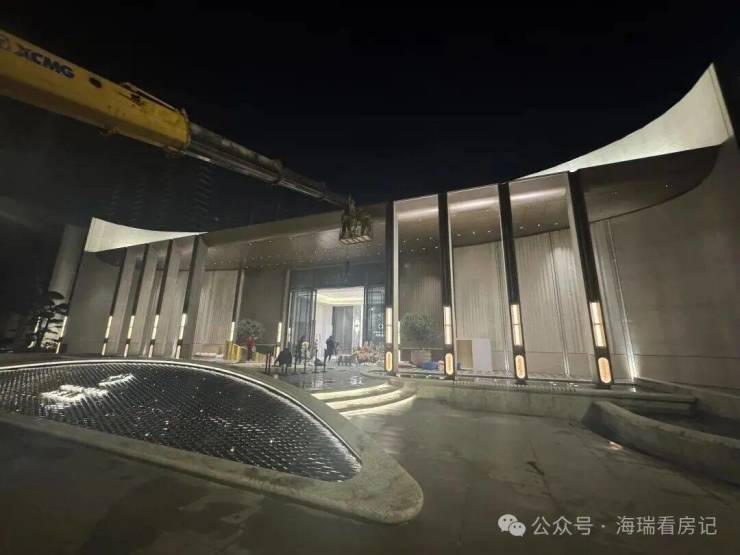 在选材上,项目采用米色石材、铝板和金属镶框进行多元混搭,重点刻画单元入口、入户大堂等细节,质感非常丰富。尤其艺术感的弧形镜面立面,与门前蜿蜒的水岸风光相呼应,让建筑仿佛拥有了呼吸感和浪漫的情绪。