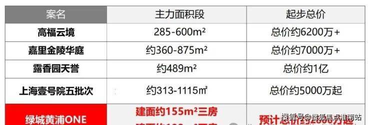 距离绿城黄浦ONE最近的次新标杆二手房小区,150-200m²户型挂牌均价20-23万/m²!