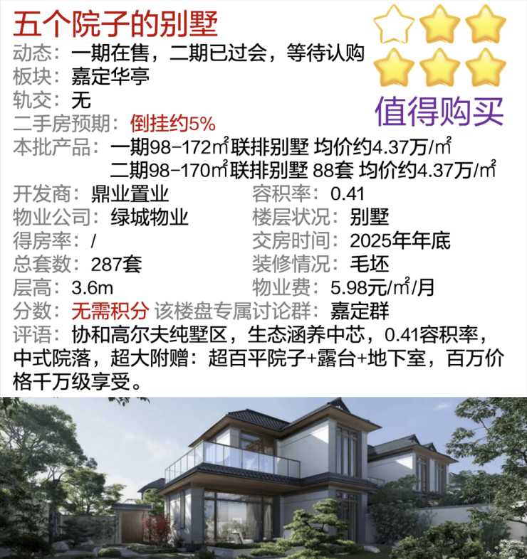 用户点评:4.02五个院子别墅预约热线☎:400-8080-420✅✅