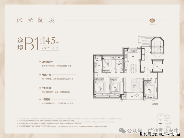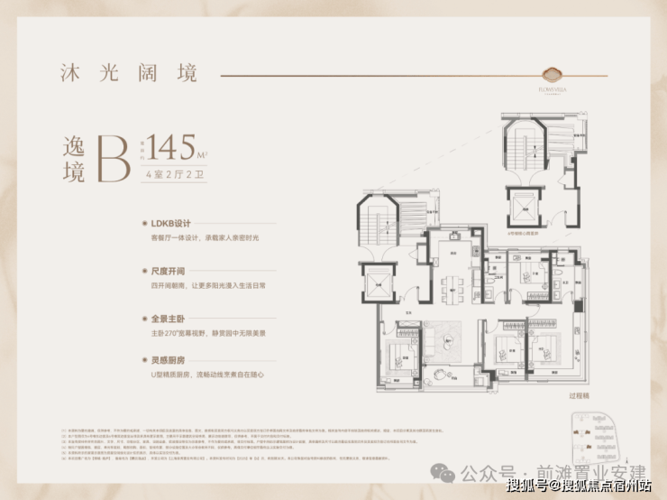 1、建面约145平户型热销且紧缺四房产品,类一梯一户设计,边套转角窗搭配超高窗墙比,采光通透,兼具功能与尺度的双重要求;