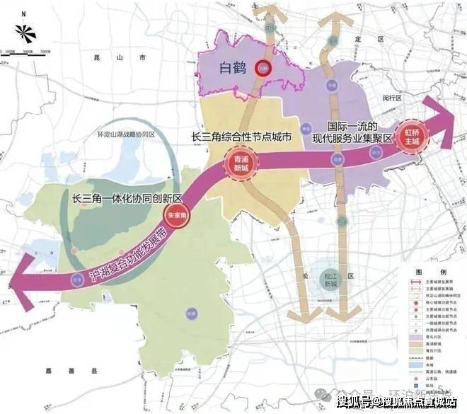 逢迎东风,项目所在的青浦白鹤已被纳入上海、江苏、浙江长三角绿色生态一体化发展示范区范围。同时上海市新一轮城市总体规划提出,将以城镇圈作为郊区空间组织和资源配置的基本单元。