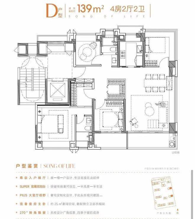 且项目采用南向双阳台布局,相较一南一北设计,舒适度提升更大,让南卧也拥有趋近主卧的开阔尺度。