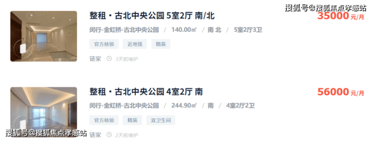 古北中央公园140㎡小户型,租金高达35000元/月。