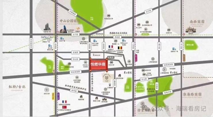 悦燃华庭预约热线☎:400-8080-420✅✅【商业】古北商圈、中山公园商圈、徐家汇商圈、漕河泾商圈以及静安寺商圈,驾车15分钟内均可到达;驾车20-30分钟可以到达外滩、陆家嘴.3KM范围内集中了淮海路、徐家汇、虹桥三大重量级商圈,这里有恒隆广场、美罗城、新淮海坊、上海世贸商城、高岛屋百货等上海闻名遐迩的购物中心.