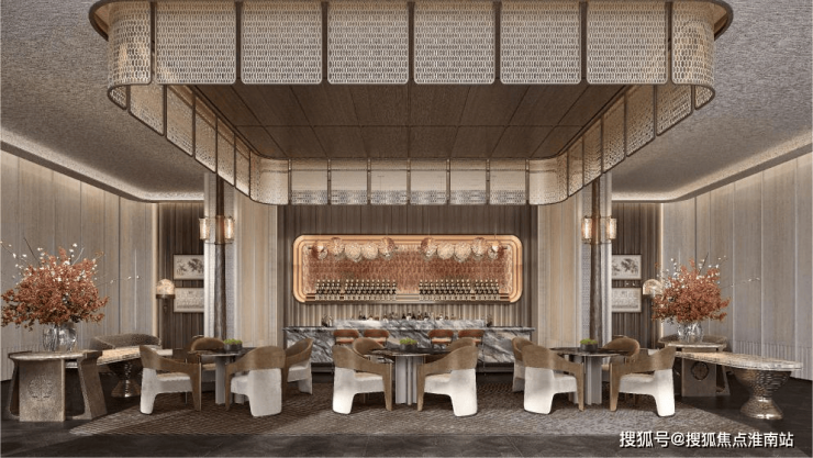 不同于寻常项目进门后直接进入小区,招商序打造约 4.5m高的迎宾楼,玄关左右两侧均可通行,且各建有一处会客区域,给到了业主更多元和更具仪式感的归家场景。