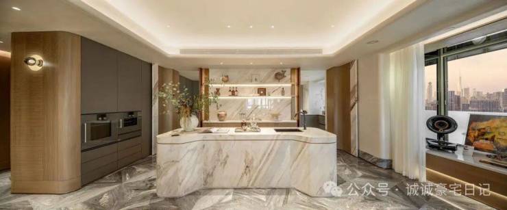 万科中興傲舍凝聚72种高端豪宅都难得一见的奢材,如皇家白奢石、Prada绿皮革面奢石、砖纹定制铝板等等,每一处细节都透露出精致与考究。