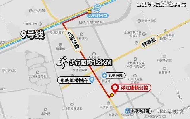 【洋江唐顿公馆】位于南九亭,距离9号线九亭站约1.2公里,可以乘坐离项目约100米左右的松江40路抵达。