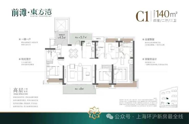 这2个户型是“一步到位”的大4房,无论是功能性还是尺度感,都是浦东改善置换金字塔塔尖的存在,未来纵享长久板块发展红展红利!