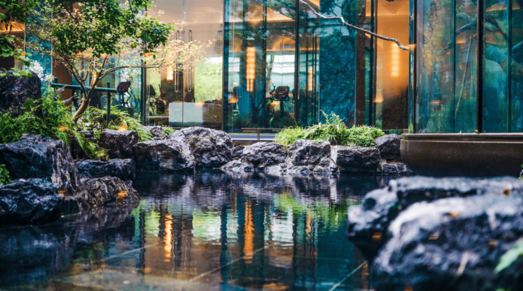 二是在社区内对于水景的打造,要知道就算是很多千万级以上的项目都难以在社区内规划水景景观,原因很简单——水景打造可以算是园林景观设计中造价高的!但在招商臻境的社区规划内,看到了多处极其充满质感和现代艺术感的水景景观!这,是壕!除此之外,由紫薇、香橼、朴树等高大的灌木所营造的下沉花园闲适空间,