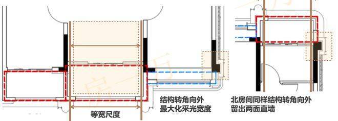 其二,卧室的短支剪力墙尽量避免向户内延伸,而是选择在外墙用造型包裹。