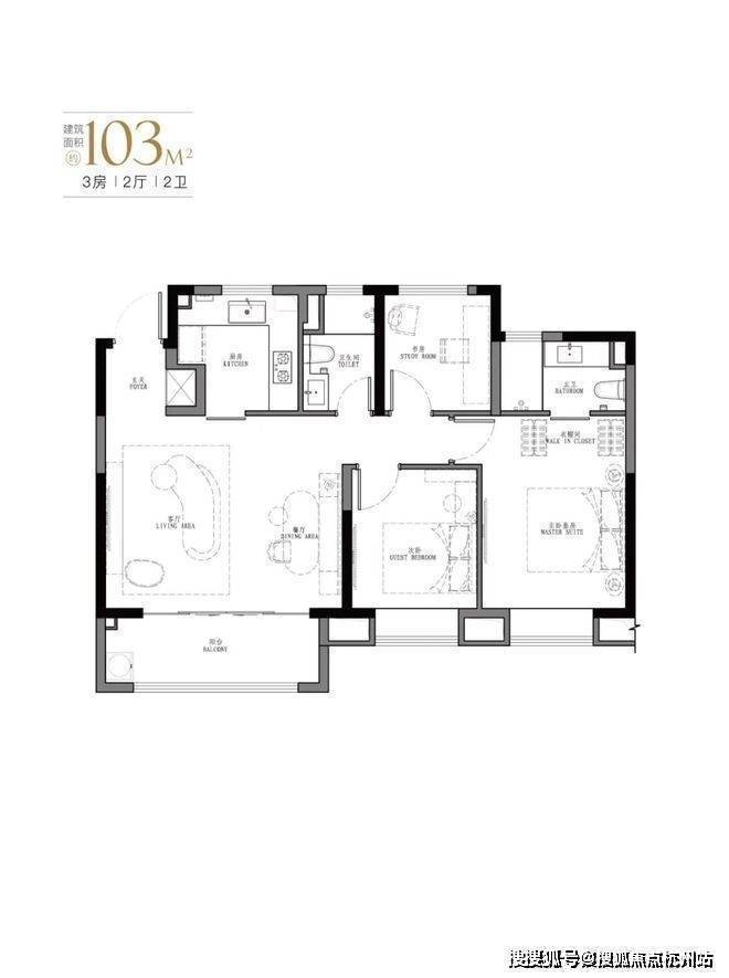 产品:103㎡、107㎡的三房两厅两卫及123㎡、129㎡的四房两厅两卫。
