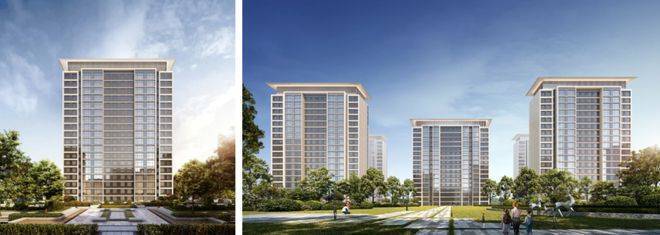 主题风格:外立面采用经典时尚现代主义风格,通过温和的色彩搭配、简练的横向线条、黄金比例的立面比例、极简抽象的建筑符号、建筑顶部的飘板,呈现一个现代风格和艺术气质结合的高品质社区。