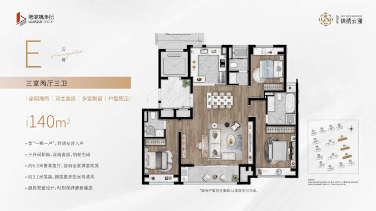 目前陆家嘴锦绣云澜正在热销中,其精心设计的建面约98㎡3房、约140㎡4房以及168㎡4房户型,备受好评。目前剩余140㎡4房在售!