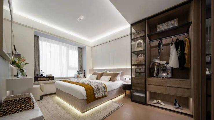 不仅标配了中央空调+新风系统,而且还设计了全屋墙布、不锈钢踢脚线、磁吸轨道灯带设计等等……从装修大件,到细微之处,无一不体现了这个精工国企对于这个社区的匠心。