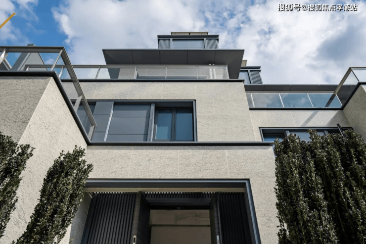 联排别墅新亚洲风格,外立面结合了石材、铝板和玻璃幕墙,简约大气、历久弥新的同时,也让起居空间保证了充足的透光率!