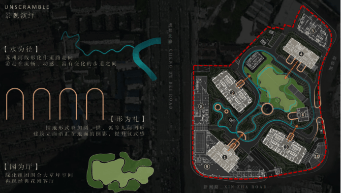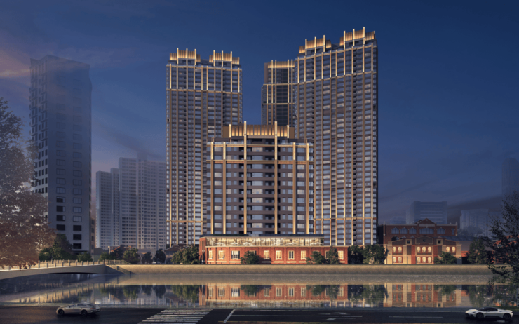 并借鉴海派大都会园林的的摩登、精致、艺术、惬意之精髓,以水为径、以形为礼、以园为厅,打造情景交融的塔尖圈层社区场景。