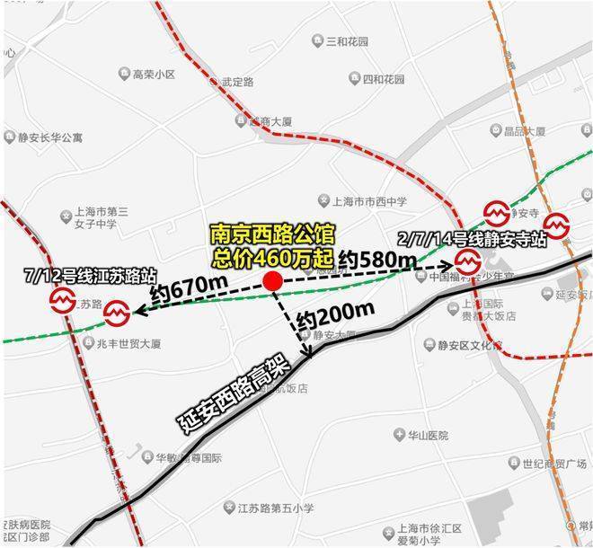3、共享南京西路顶级商务、奢饰精品商业、出门延安高架、地铁2号线、7号线、11号线静安寺,江苏路站步行500米;