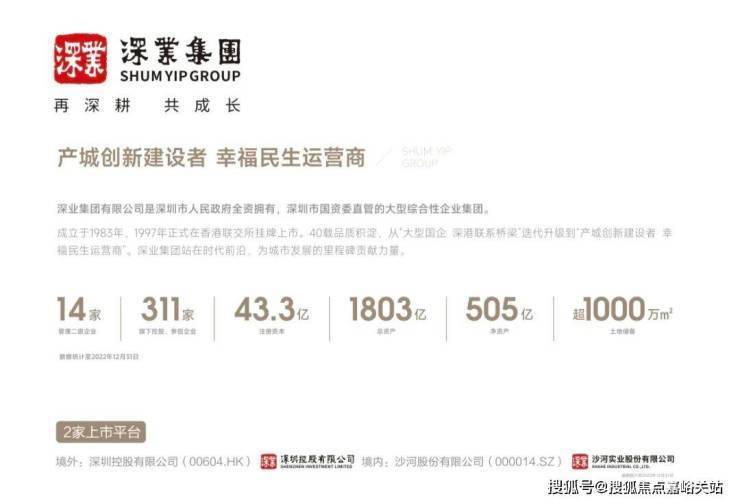 深业集团是深圳市人民政府全资拥有,深圳市国资委直管的大型综合性企业集团,成立于1983年,1997年正式在香港联交所挂牌上市。