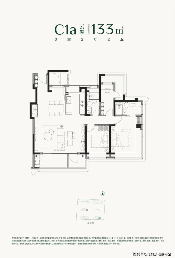 建面约133㎡3房2厅2卫▼