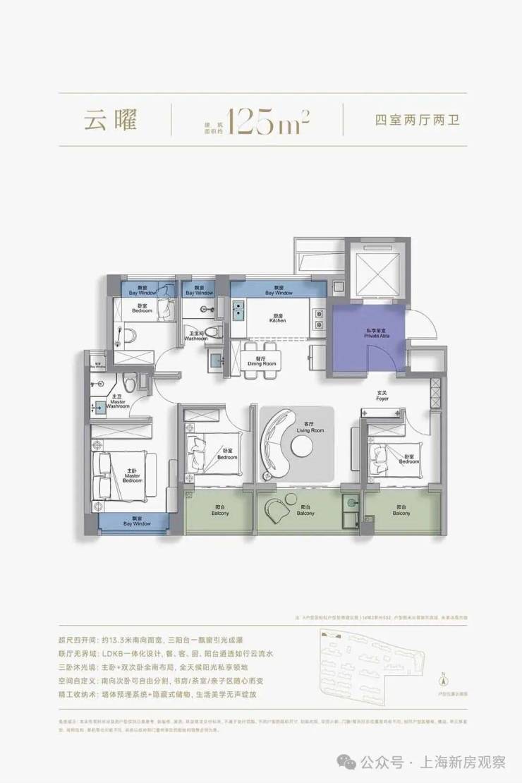 前期少量建面约104-125-148㎡3+X房(小高层)过会均价54026元/m²!目前,104户型售罄,仅少量125及148户型在售,总价616万起!