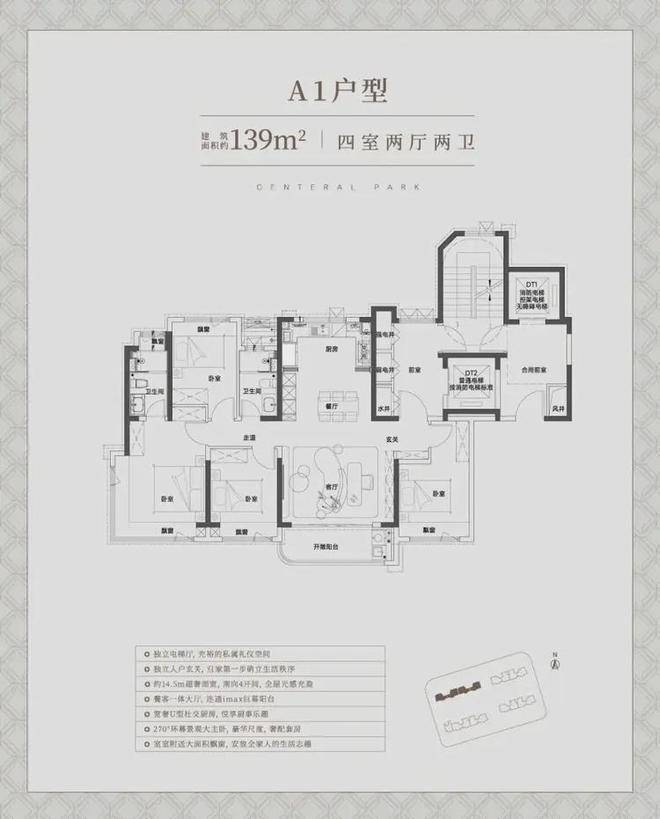 4#楼户型为建面约139㎡四房,✅✅中环铂樾售楼处电话:400-8787-740✅✅拥有“个性大四房+15.05米IMAX大面宽+一梯一户(边套)+270°转角飘窗”构建纯粹改善设计。