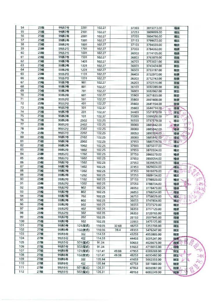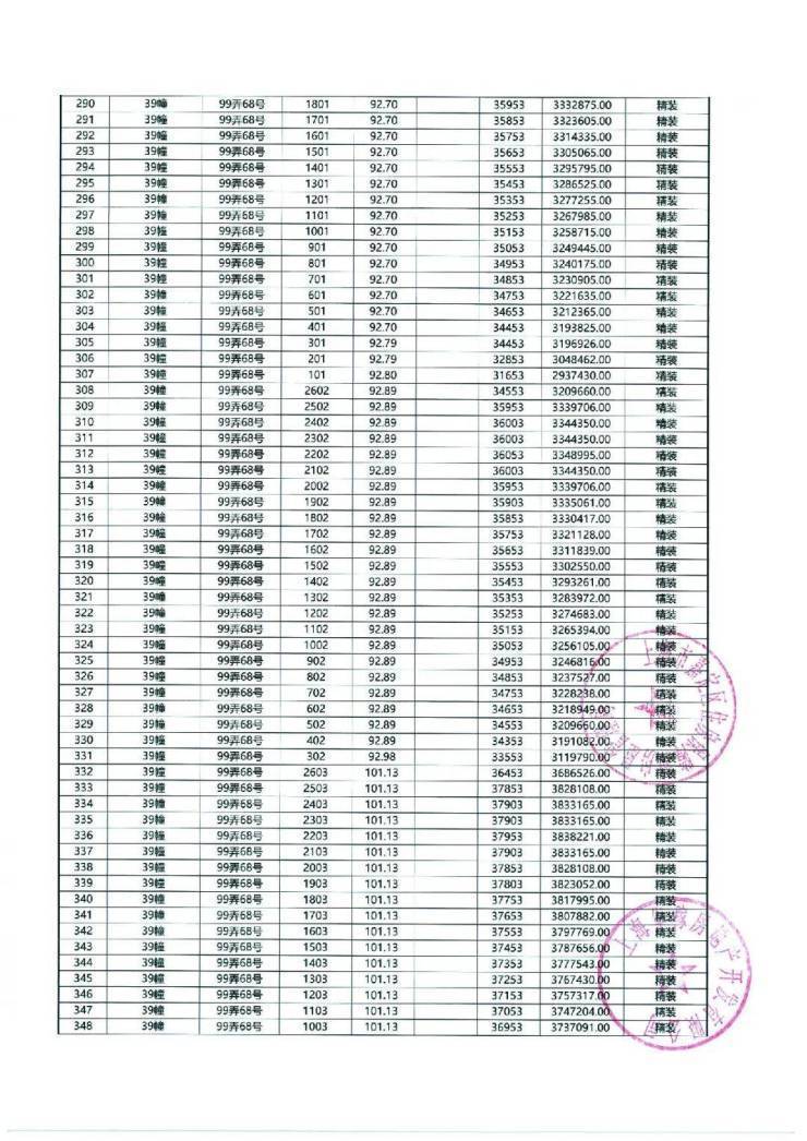 以下为项目最新一房一价表