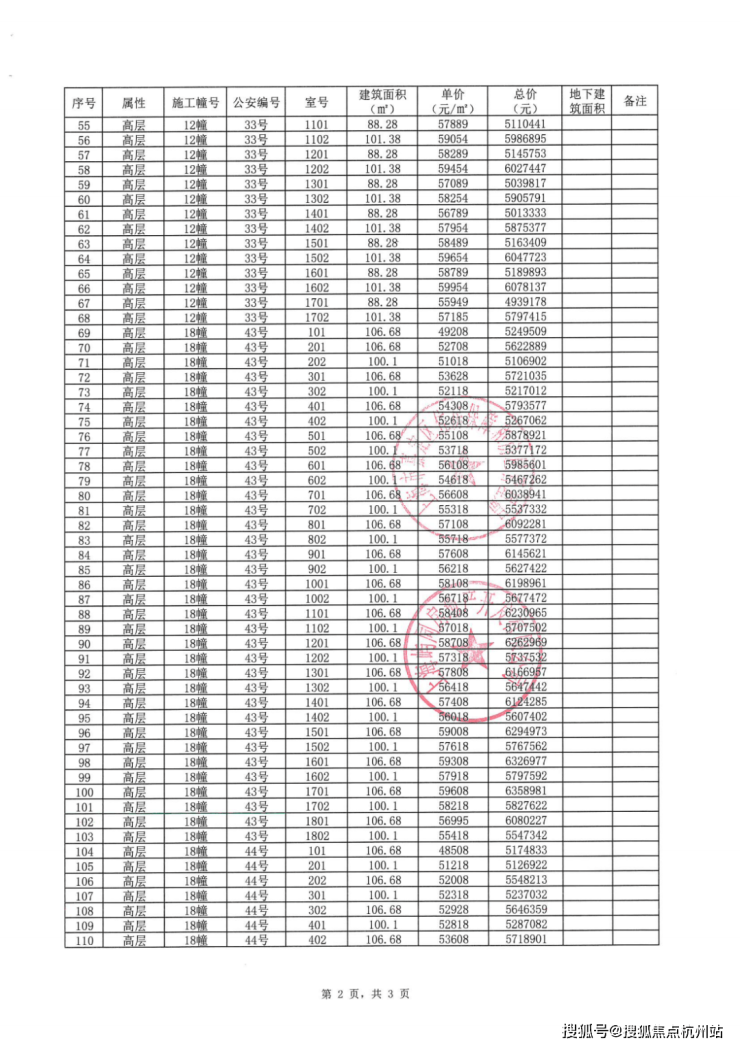 一房一价表: