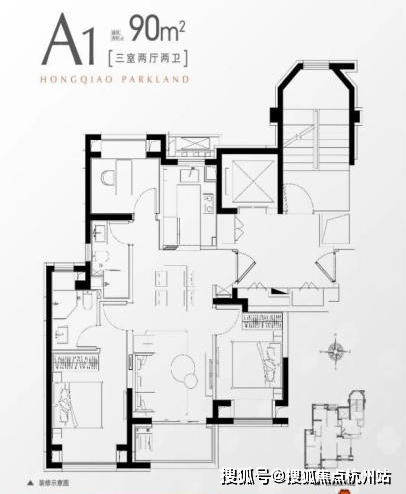 建面约90㎡的三房两厅两卫:这是一个让人一眼心动的户型。在别的楼盘,建面约90㎡做三房两厅一卫可能空间已很极限。但华发做到了双卫设计,完美解决了早高峰的抢厕尴尬,三开间朝南、飞机户型、南北通透,再加上U型厨房和主卧套房,这简直是年轻夫妻一步到位的“梦中情房”。