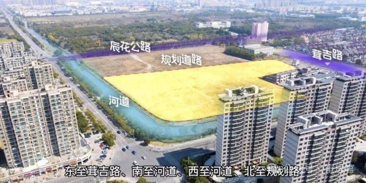 地块四至范围:东至茸吉路,南至河道,西至河道,北至规划路,为普通商品房用地,地块出让面积42480.63㎡,容积率2.3,建筑面积97705.449㎡。