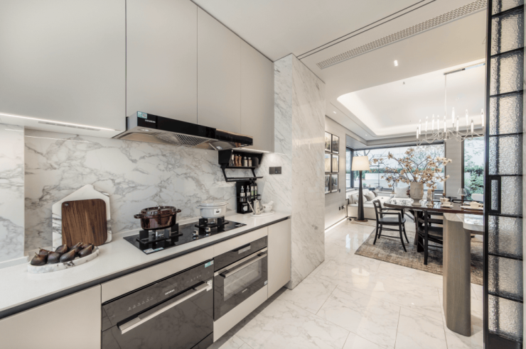 智能化系统则贯穿归家全流程。车辆停泊后,地下入户门厅通过智能识别自动开启,业主可无缝衔接进入单元电梯厅,全程无需触碰任何设备。