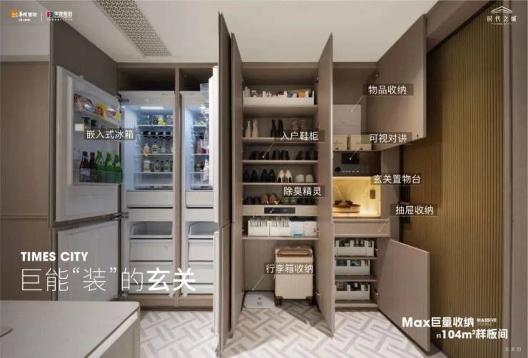 从最新开放的104户型样板间可以看出,项目对新品户型的收纳储藏空间做了全维升级,实用性更强。