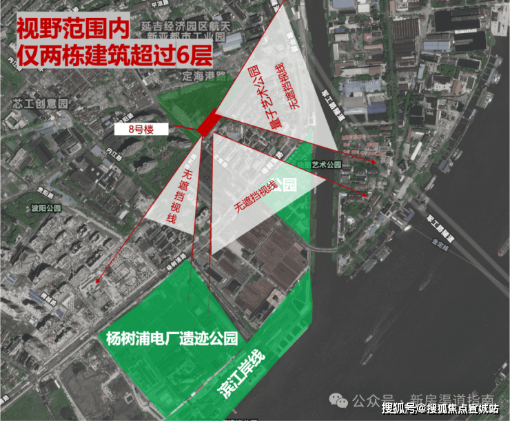 项目位于杨浦滨江“一岛两翼“黄金支点,向左是滨江南段产业核心,向右是复兴岛未来科创。