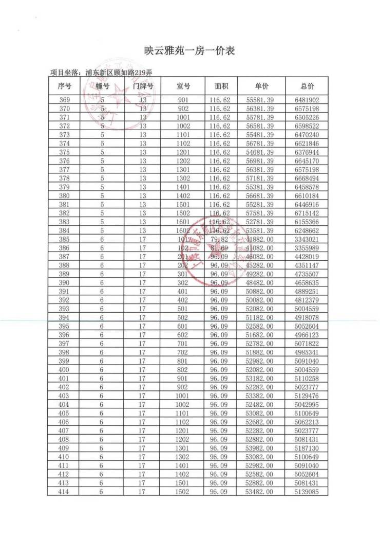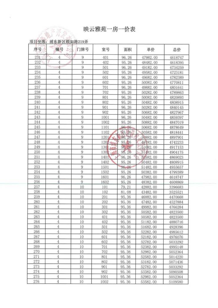 项目一房一价表▼