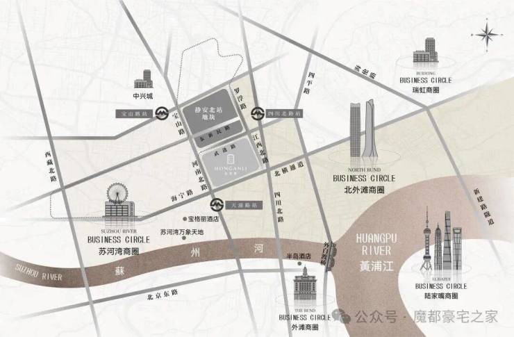 商业配套:周边有星荟中心、宝华城市广场等商业,另规划有四川北路18号街坊,作为虹口生活新地标,包含超甲级写字楼,上海约14,000㎡的文化博物馆。