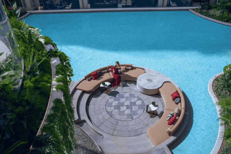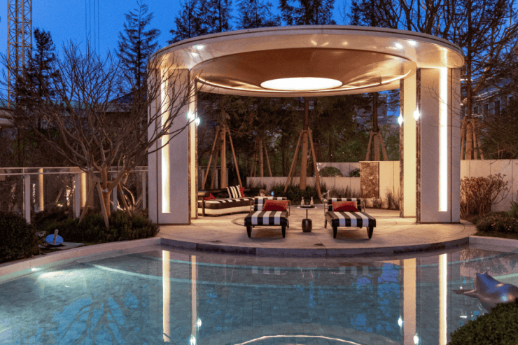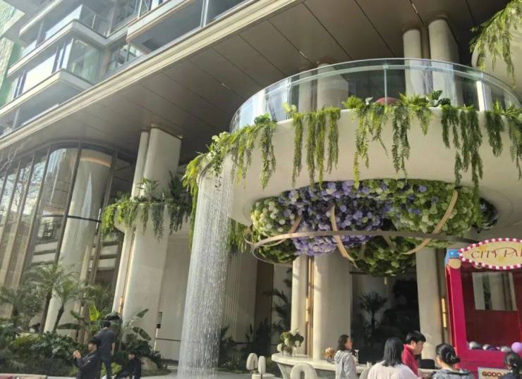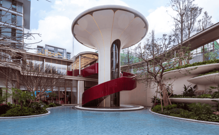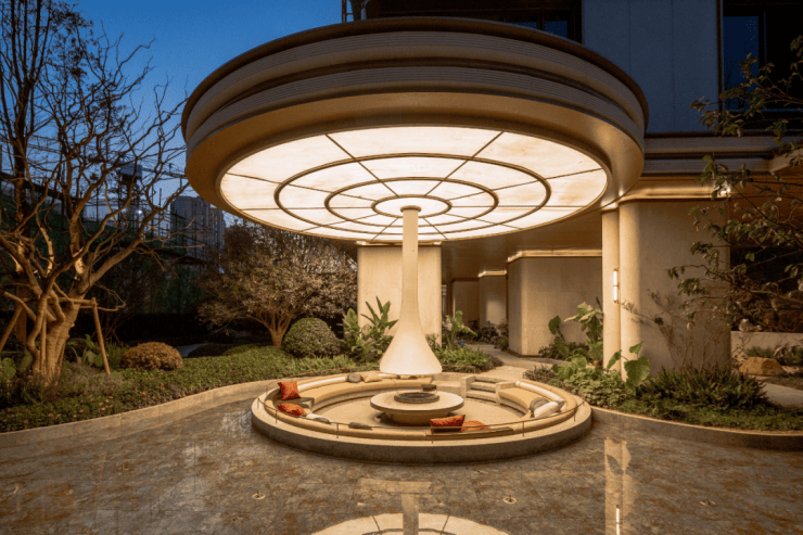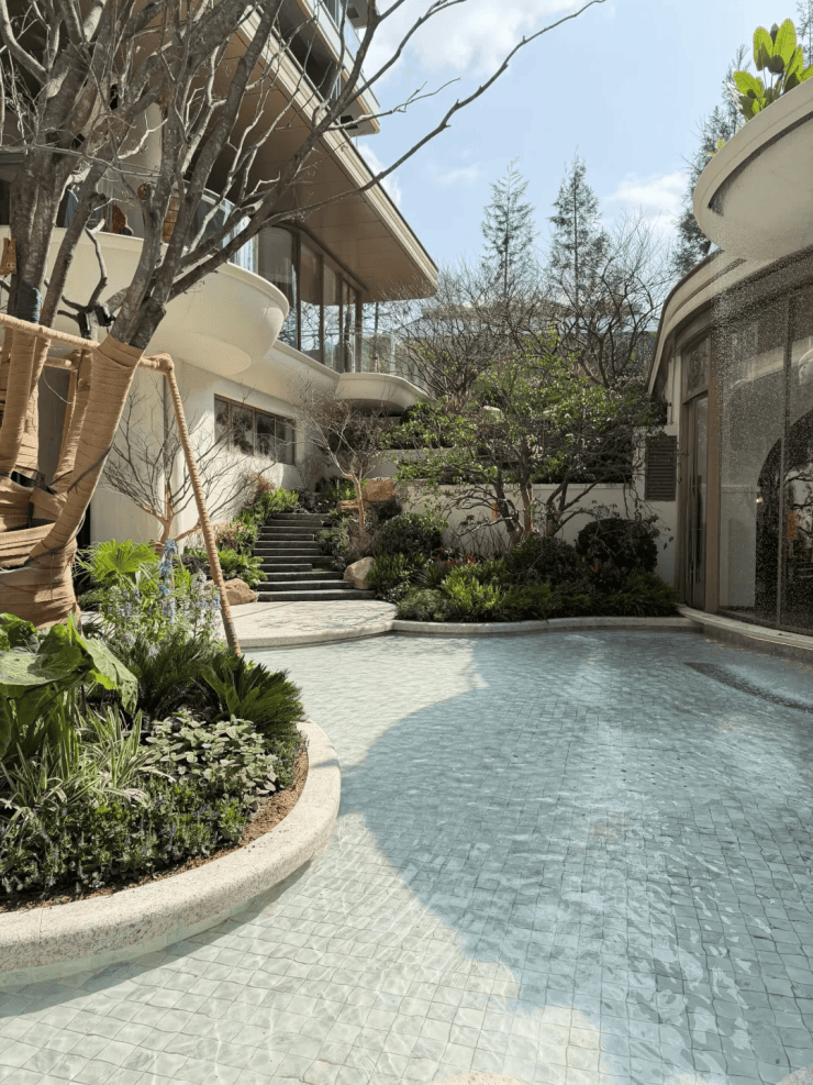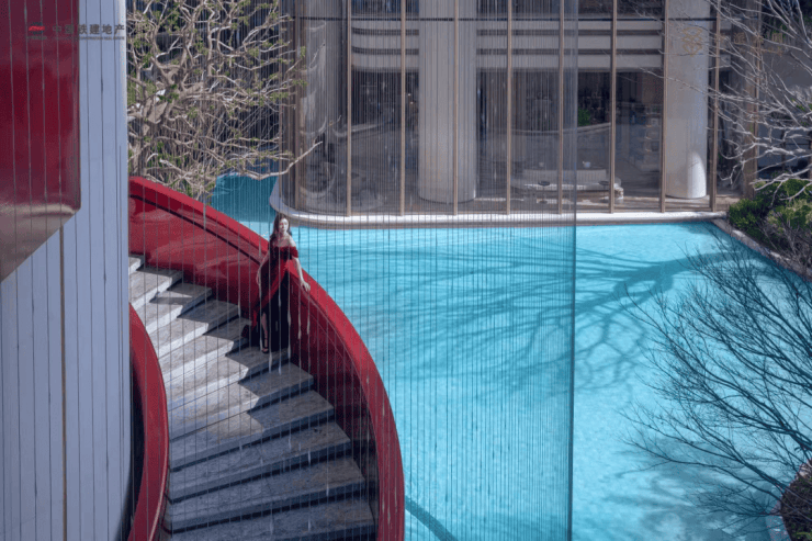 约1600㎡瀑布水院,把度假搬进社区