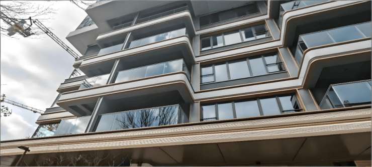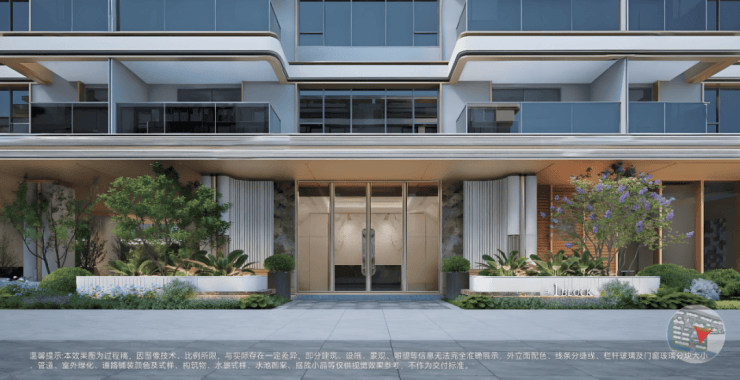 建筑采用现代简约风格,以大面积玻璃幕墙+金属线条勾勒利落轮廓,底部搭配石材基座,兼顾质感与耐用性;浅色系主色调,线条流畅,无多余装饰,强调横向舒展感;高窗墙比设计,最大化提升室内采光与视野通透性;同时采用高端真石漆与保温一体板,兼顾保温、隔音性能,历久弥新。