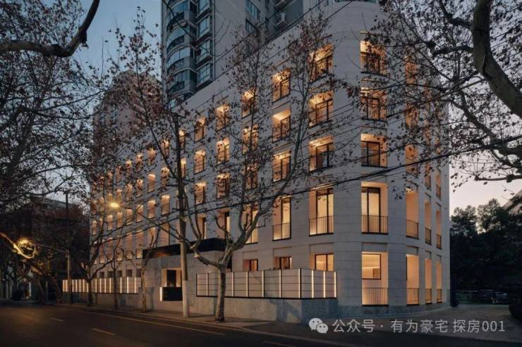 细致雕琢的建筑立面,保留Art-deco装饰主义风格的细节,又与当代艺术相融合,采用法国进口柏辽兹作为外墙石材,充满韵律感的法式阳台,仿佛置身巴黎左岸的建筑街区,伸手即可触碰老上海的法式梧桐。