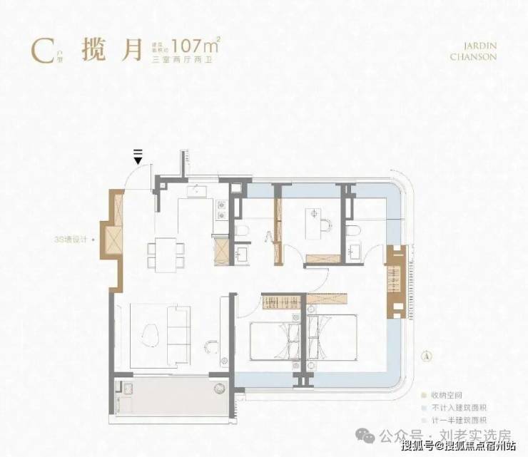 其三,北地块建面约101㎡3房产品具备划时代的创新意义。