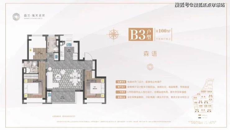 1、森兰·海天名筑官方售楼处:400-9966-940💎💰建面约100㎡三房两厅两卫,市场主流户型。客餐横厅设计配多功能阳台,优势在于更大采光面和更好通风效果,把过道纳入到客厅和餐厅的空间中来,使整体空间得到更好的利用。