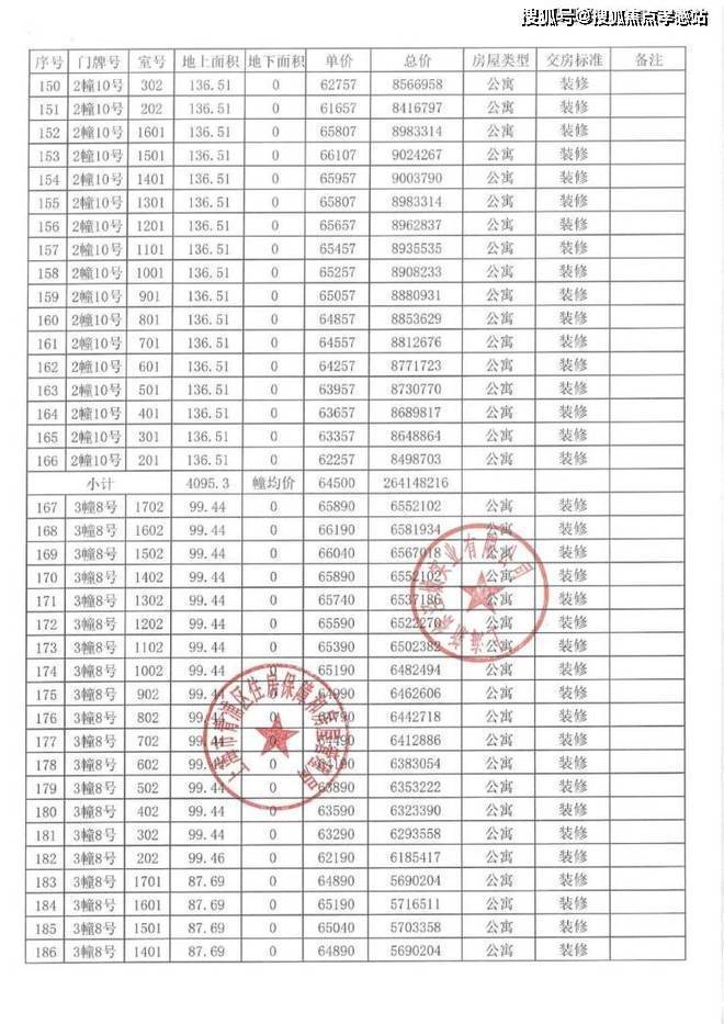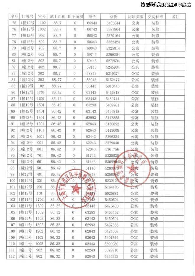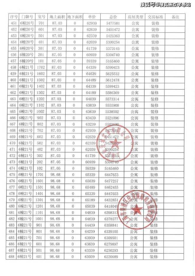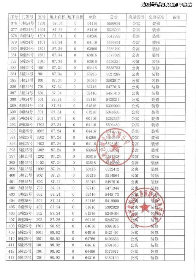 以下为项目完整一房一价表