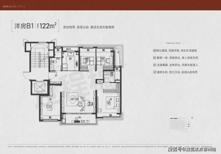 建面约122㎡4房2厅2卫,共计约88套,