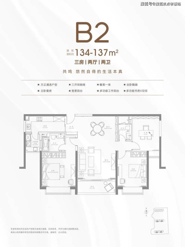 建面约134-137㎡B2户型: