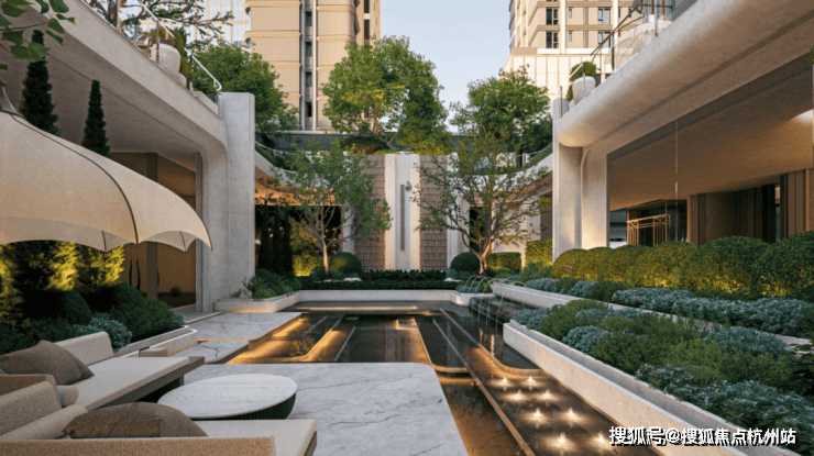 下沉式庭院会所更是集功能性与美学于一体,中央水景、休闲坐席与健身区、恒温泳池等,既满足业主的运动需求,也为社交聚会提供了优雅场所。