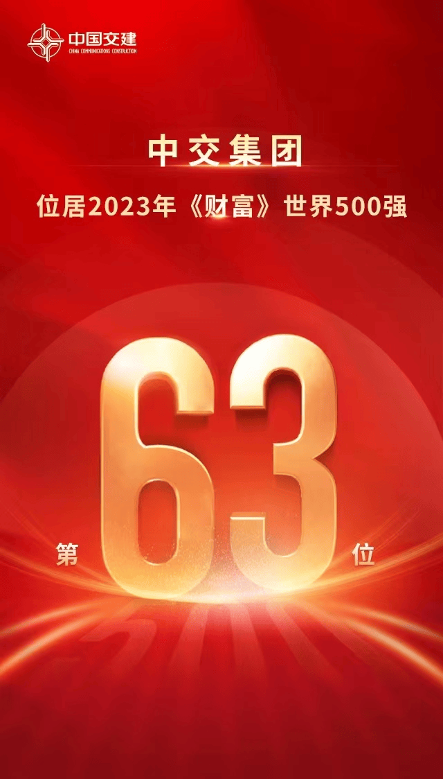 2023年《财富》世界500强排行榜揭晓,中交集团以1382.70亿美元营业收入排名第63位!中交集团已连续16年荣登该榜单!