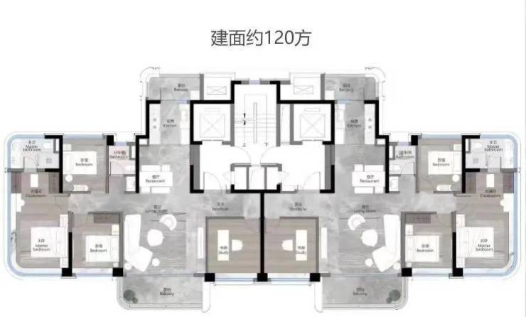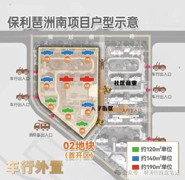 02地块规划了3个面积段,120-140-190平,都是南北对流双阳台四房。