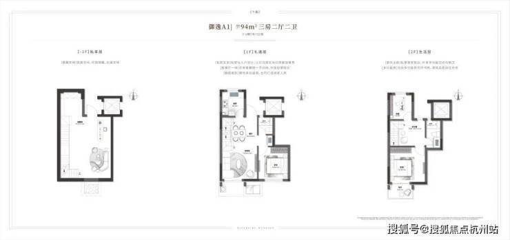 1)对于三口之家或小型三代同堂,94㎡宽境叠院【御逸】堪称空间利用的典范。