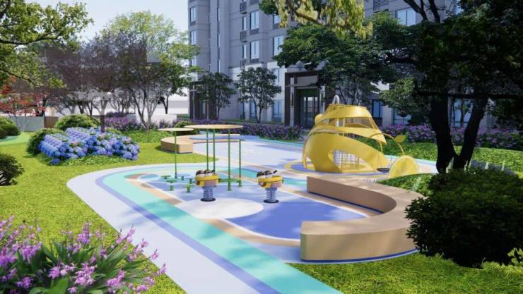 阳台与庭前绿地连成一体,庭前绿地有分段实体院墙围合,保障了每户独立性和私密性,让业主可以在此充分享受品茗闲聊的生活小确幸。
